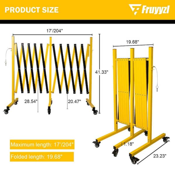 2-Pack 204 in. Metal Expandable Barricade,Folding Security Gate Safety Barrier Gate Adjustable Traffic Fence with Caster