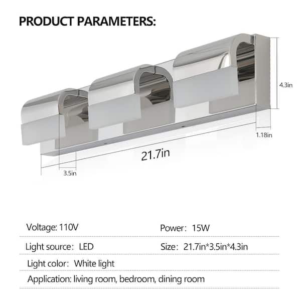 21.7 in. 3-Light Chrome LED Bathroom Vanity Light Over Mirror Bath Wall Lighting