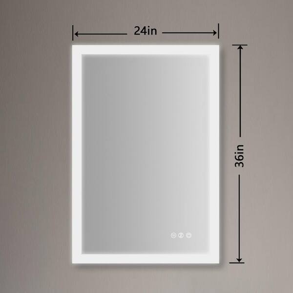 24 in. W x 36 in. H Rectangular Aluminum Framed Anti-Fog Wall Mount Bathroom Vanity Mirror with LED Light