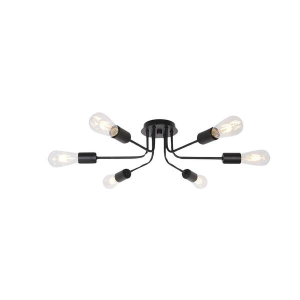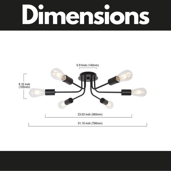 31.1 in. 6-Light Black Modern Sputnik Chandelier Semi- Flush Mount Ceiling Light