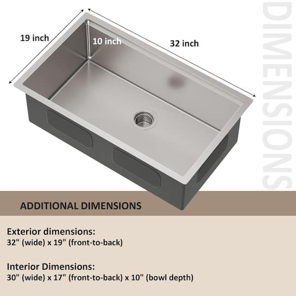 32 in. Workstation Undermount Single Bowl 16 Gauge Stainless Steel Kitchen Sink with Accessories