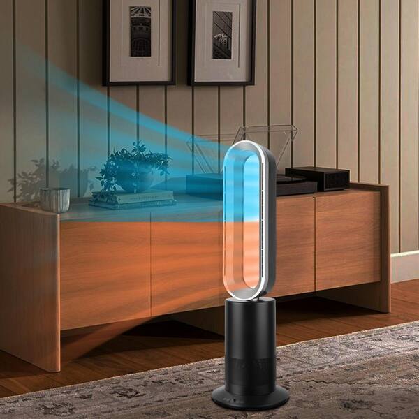 34 in. Bladeless Tower Fan in Black Heater and Fan Combo Oscillating Fan