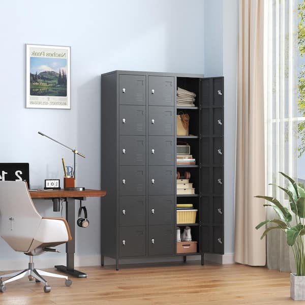35.4 in. W x 72 in. H x 15.8 in. D Metal Freestanding Cabinet in Black with Lock for Home Gym Office School Garage