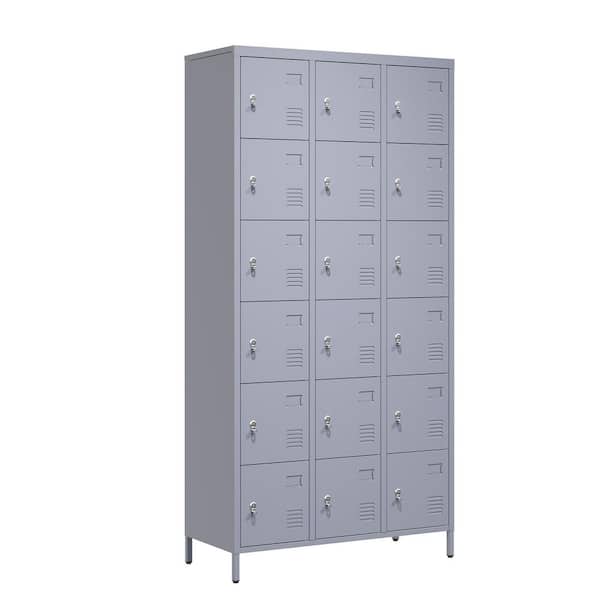 35.4 in. W x 72 in. H x 15.8 in. D Metal Locker Freestanding Cabinet in Gray with Lock for Home Gym Office School Garage