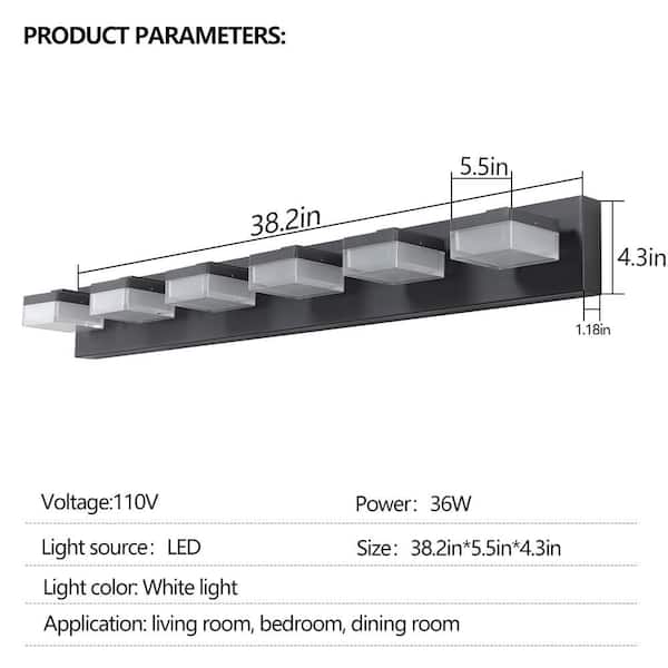 38.2 in. 6-Light Black LED Vanity Mirror Light Fixture For Bathrooms and Makeup Tables