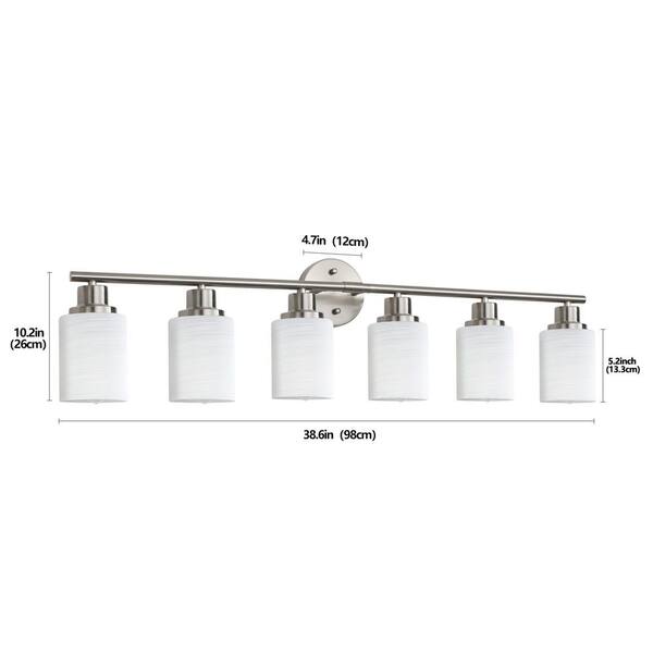 38.6 in. 6-Light Brushed Nickel Vanity Wall Sconce Vanity Light with Frosted Glass Shades (No Bulbs)