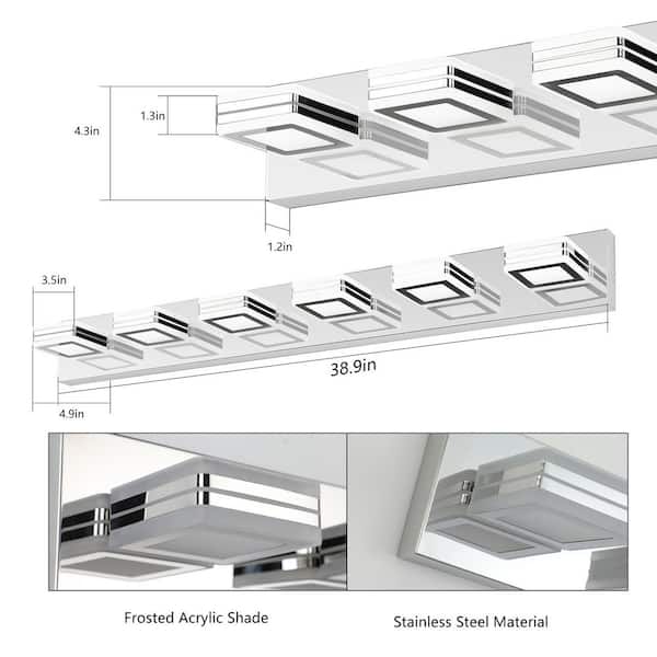 39 in. 6-Light Acrylic Chrome Makeup Mirror Light LED Vanity Light