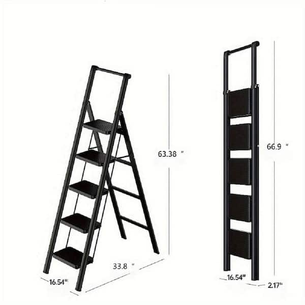 5 ft. 5 Step Steel Folding Multi-Purpose Step Ladder Step Stool with Anti-Slip Wide Pedal (9 ft. Reach)