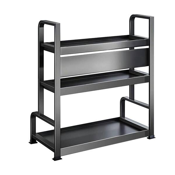 Elegant Black Multi-Layer Metal Kitchen Organizer Countertop Spice Rack, Knife and Utensil Holder, Condiment Basket