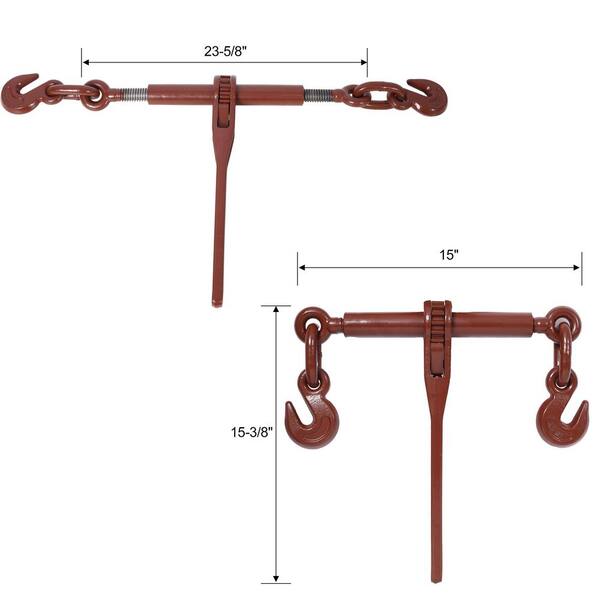 Red Heavy Duty 5/16 in. - 3/8 in. Ratchet Binders, 9200 lbs. Working Load Breaking, G70 Hook Adjustable Length, (4-Pack)