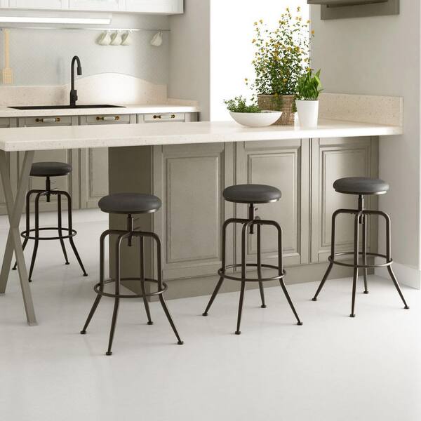 Ana 28.5-31.5 in. Adjustable Height Black Backless Metal Frame Swivel Industrial BarStool with PVC Seat(Set of 2)