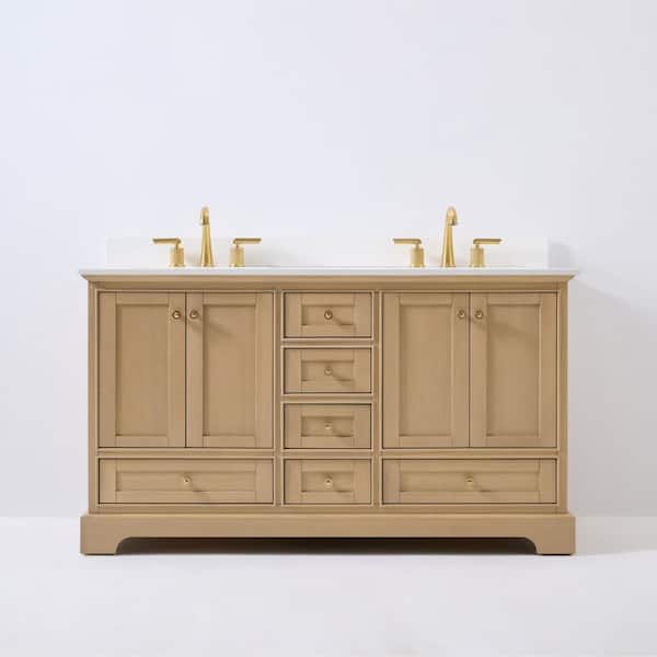 Audrey 60 in. W Bath Vanity in Oak with White Quartz Top