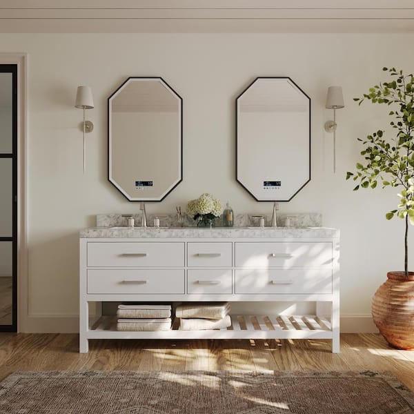 Elizabeth 72 in. W x 22 in. D Vanity in White with Marble Vanity Top in Carrera White with White Basins