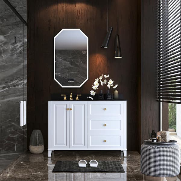 Hannah 48 in. W x 22 in. D x 34.50 in. H Bath Vanity in White with Left Offset with Black Quartz Top with White Basin