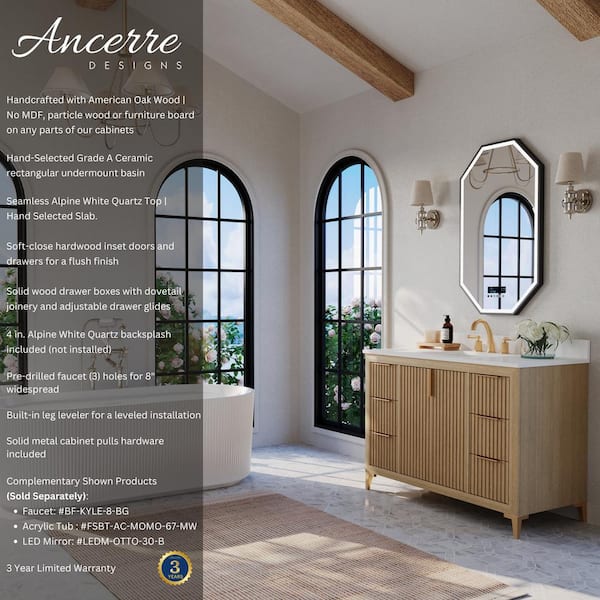 Turlington 48 in. W Single Sink Freestanding Bath Vanity in Oak with White Quartz Top