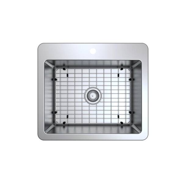 Valencia Series Dual Mount 25 in. 1-Hole Single Bowl Kitchen Sink in Satin Stainless Steel with Grid and Strainer