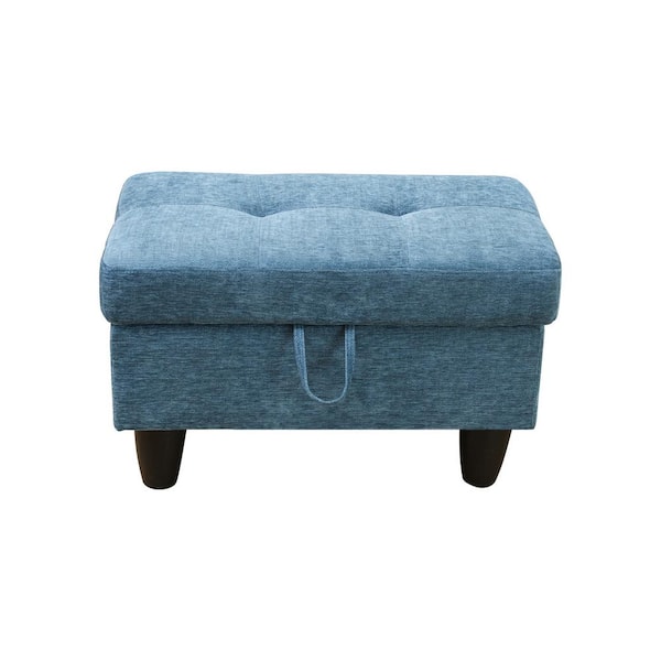 28.5 in. W Blue Flannel Polyester Blend Rectangle Ottoman with Storage