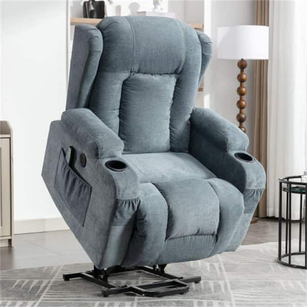 35.43 in. W Blue Fabric Recliner with Remote Control, Tufted and Storage