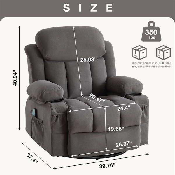 39.76 in. W Grey Velvet Recliner with Rocking, Remote Control, Tufted and Storage