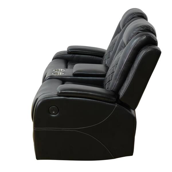 73.5 in. W Pillow Top Arm Faux Leather Rectangle Reclining Sofa in Black