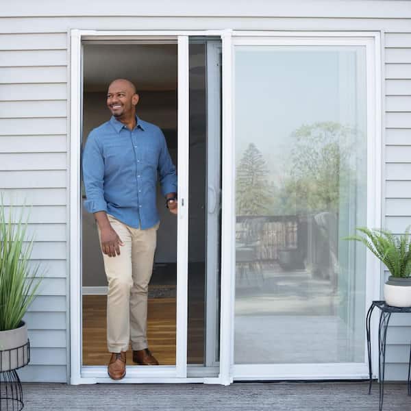 LuminAire for Sliding Patio Doors 72 in. x 80 in. Universal Black Aluminum Gliding Retractable Screen Door