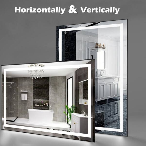 42 in. W x 24 in. H Large Rectangular Metal Framed Dimmable AntiFog Wall Mount LED Bathroom Vanity Mirror in Gold