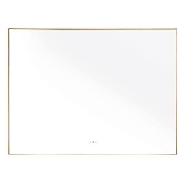 48 in. W x 36 in. H Large Rectangular Metal Framed Dimmable AntiFog Wall Mount LED Bathroom Vanity Mirror in Gold