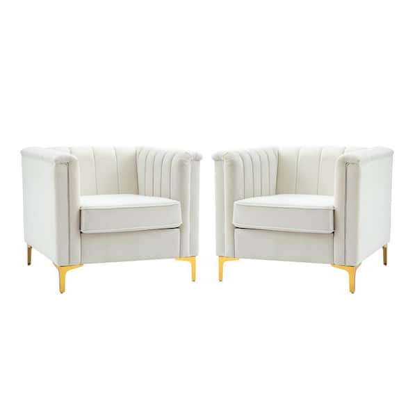 Andrea Ivory 31.9 in. Wide Arm Chair With Metal Legs Set of 2