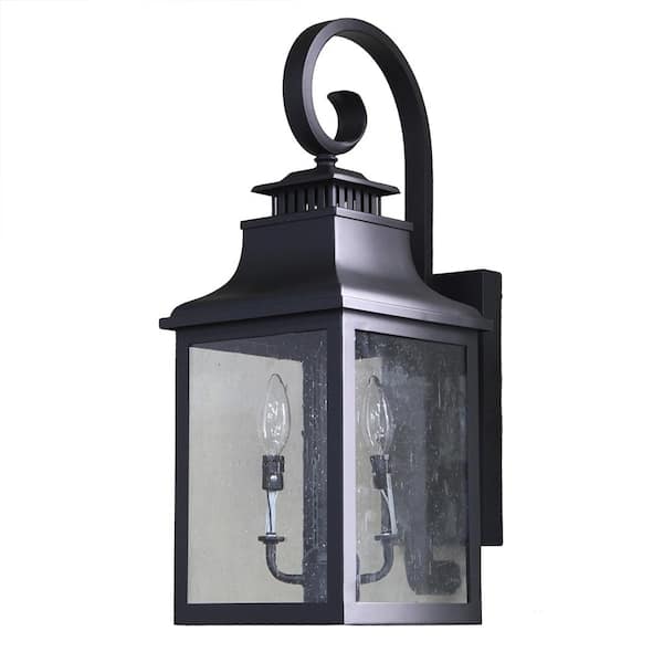 • Sleek 2-light outdoor fixture in a bold black finish