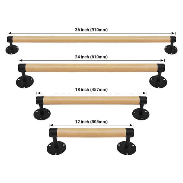 1.5 ft. Wood Modern Stair Hand Railing, Banister Railing with Black Sturdy Metal Brackets for Elderly Kids