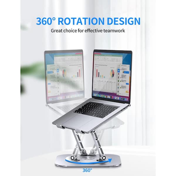 10.59 in. x 10.94 in. Aluminum Laptop Stand with 360 Rotating Base, Foldable Computer Stand for Desk (Silver)