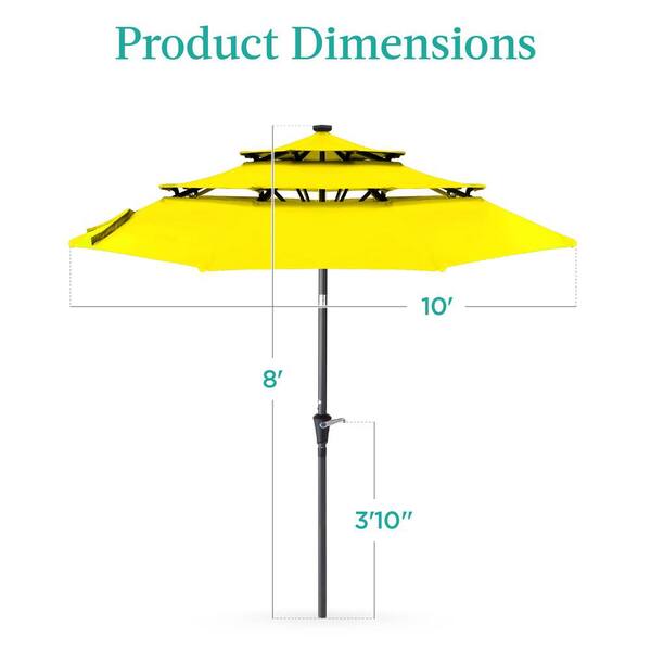 10 ft. 3-Tier Market Solar Patio Umbrella with Tilt Adjustment, 8 Ribs and 24 LED Lights in Yellow