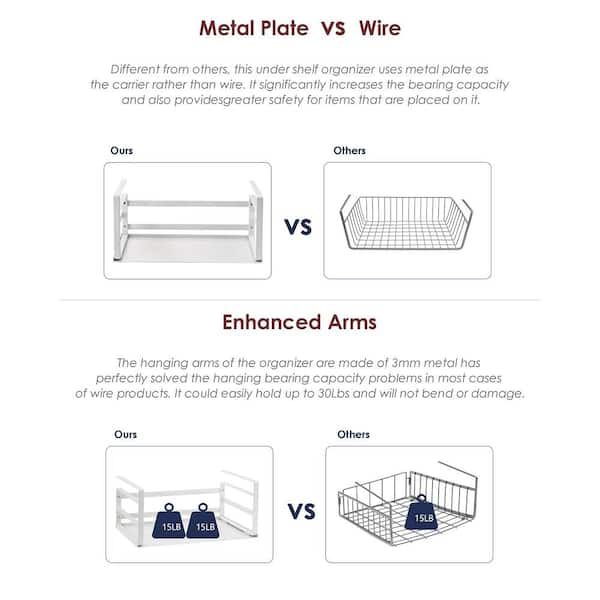 16.14 in. x 9.84 in. Heavy Duty Slide-in Shelf Storage Basket Organizer Hanging Holder for Cabinet, White (2-Pack)