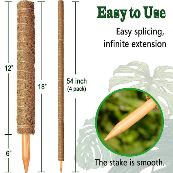 18 in. Stackable Moss Poles for Climbing Plants Monstera, Large Coir Plant Support Stakes for Patio Garden (4-Pack)