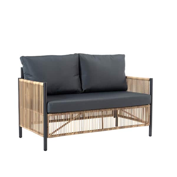2-Piece Wicker Patio Conversation Set with Grey Cushion and Table