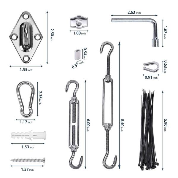 235-Piece 6 in. Shade Sail Hardware Kit for Outdoor Garden, Silver
