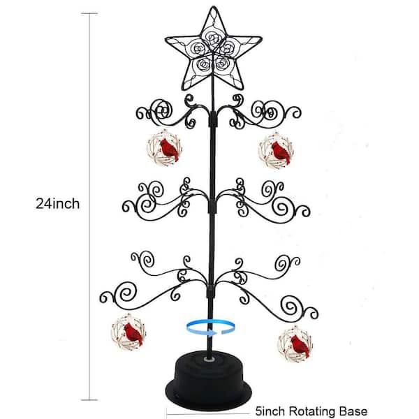 24 in. Black Metal Rotating Hanger, Ornament Display Tree Stand for Halloween and Christmas Decorations