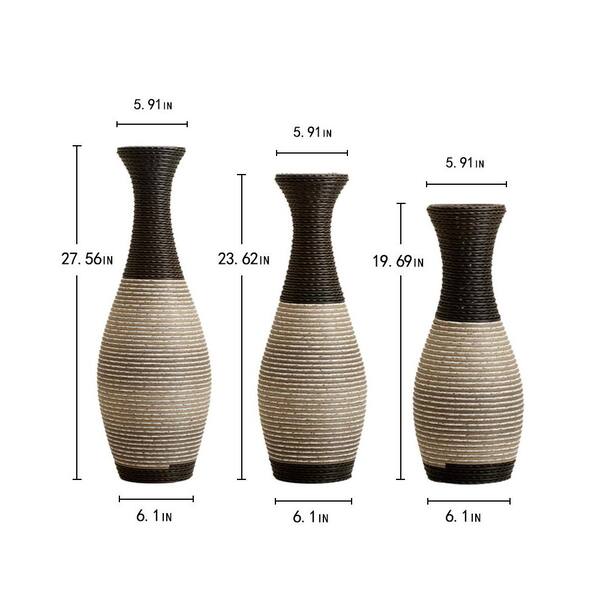 27.56 in. Brown PVC Round Decorative Floor Vase, Desktop Vase for Living Room, Bedroom and Office (3-Pack)