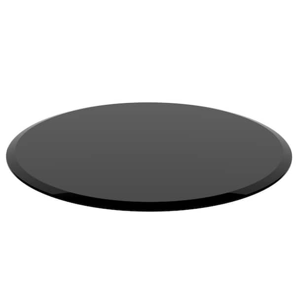 28 in. Round 0.4 in. Thick Tempered Glass Table Top with Beveled Polished Edge, Black