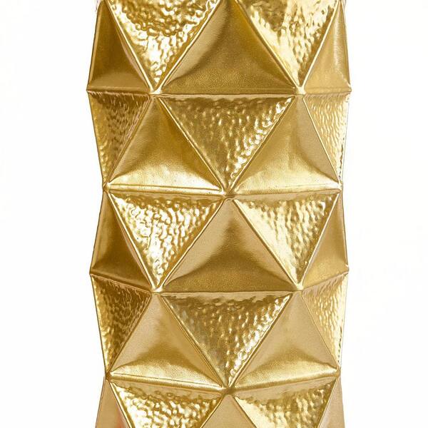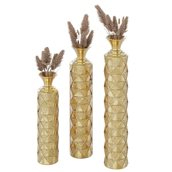3-Piece 25.2 in. /29.5 in. /33.5 in. Antique Gold Metal Cylinder Decorative Vase with 3D Triangle Pattern