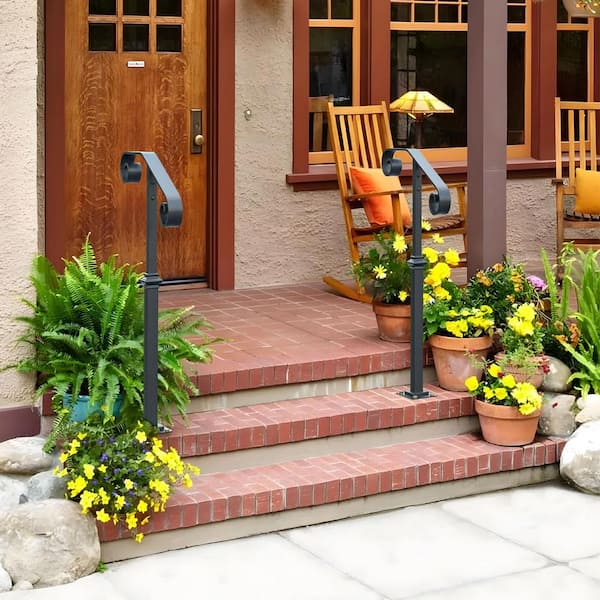 38.8 in. L x 14.35 in. W Single Post Metal Handrail, Handrails for 1-2 Steps Outdoor Steps