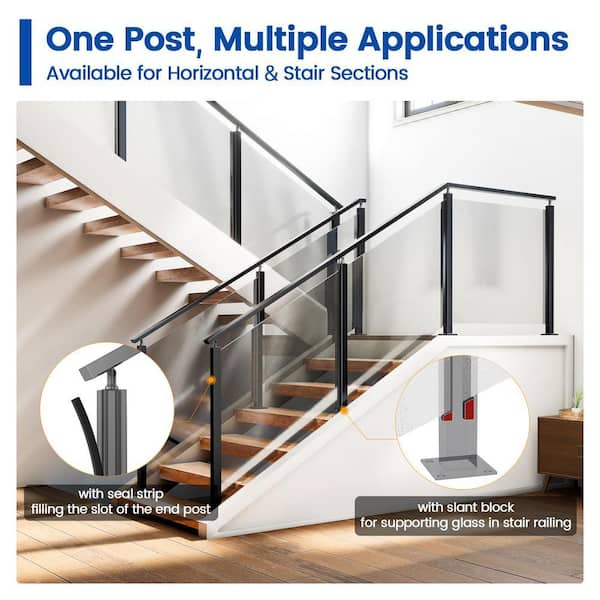 42 in. 1-Pack Glass Railing Middle Post, Stainless Steel Black Glass Railing Designed for Level Stair
