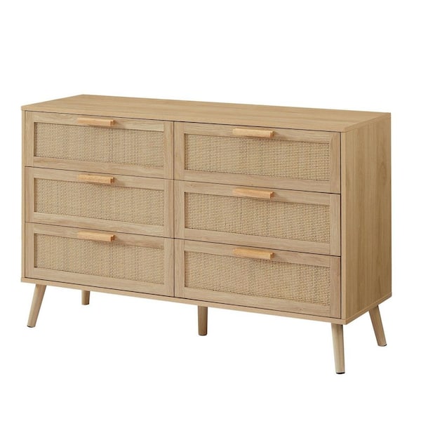 47.2 in. W x 15.8 in. D x 30 in. H Natural Wood Chest of Drawers with 6 Rattan Drawers for Living Room and Hallway