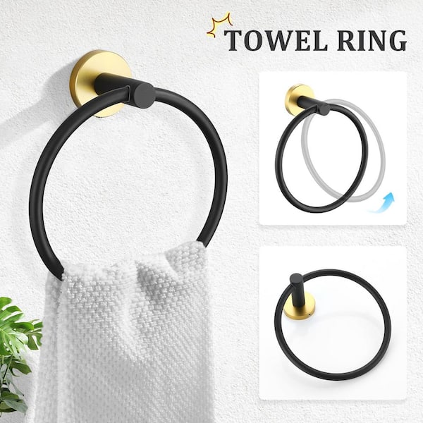 5-Piece Stainless Steel Bathroom Wall Mounted Hardware Shelves Set, Gold and Black