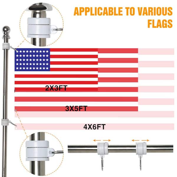5 ft. Stainless Steel No Tangle Spinning Flagpole Kit with Bracket, Silver