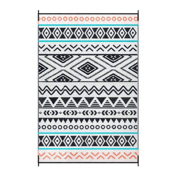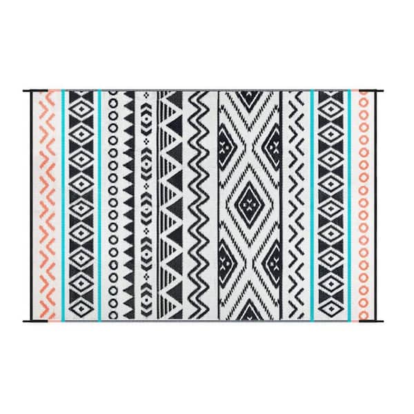 5 ft. x 8 ft. Outdoor Durable Waterproof Plastic Straw Area Rug for Patio, Backyard Porch and Camping, Black and Red