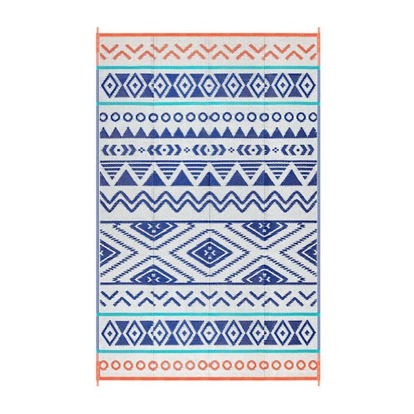 5 ft. x 8 ft. Outdoor Durable Waterproof Plastic Straw Area Rug for Patio, Backyard Porch and Camping, Blue and Red