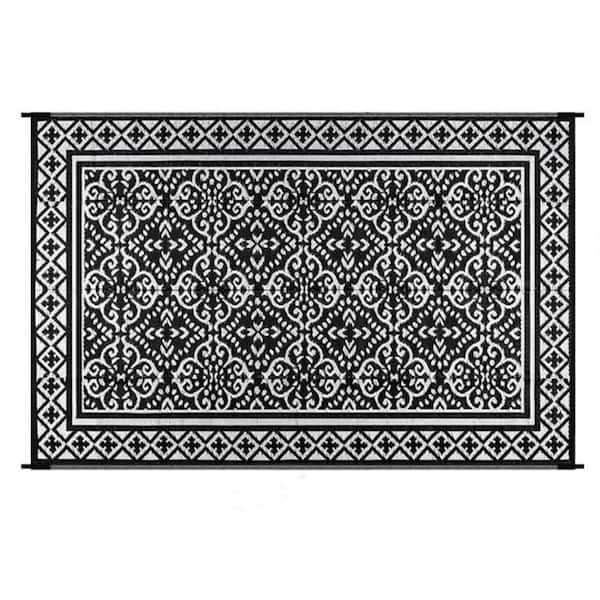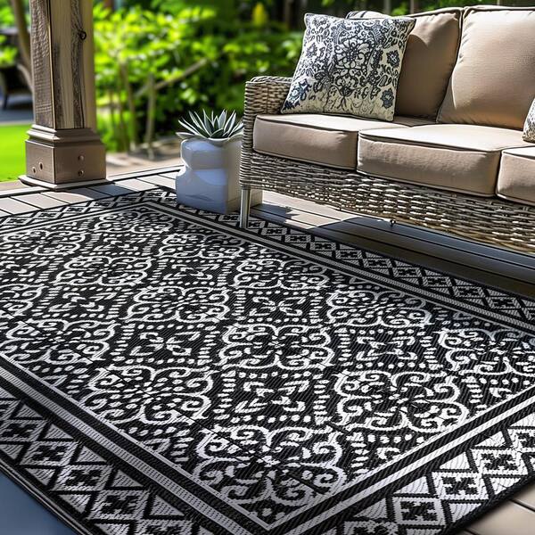 5 ft. x 8 ft. Outdoor Elegant Rug for Patio Camping, Waterproof Area Matting for Porch Balcony Picnic (Classic Black)