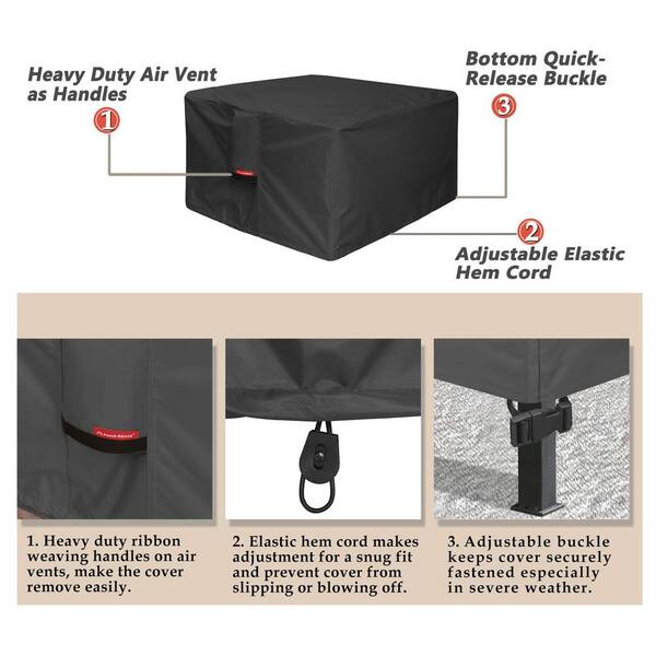 50 in. W x 50 in. D x 24 in. H Waterproof 600D Heavy Duty Square Patio Fire Pit Table Cover, Black