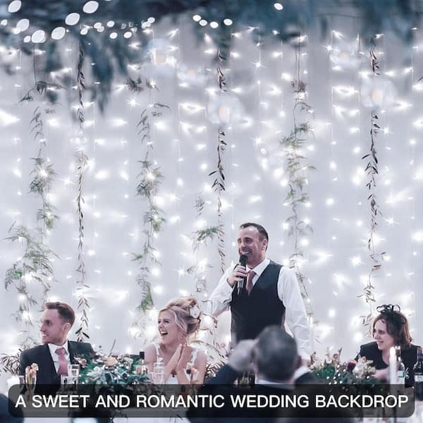 6.5 ft. x 6.5 ft. White Waterproof Curtain Lights for Bedroom Wall, 200 LED Twinkle Lights with Remote 8 Modes Timer